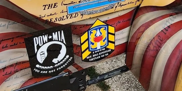 Observe the military insignia adorning the truck bed, notably the POW Flag, which carries significant meaning. The 199th Light Infantry Brigade insignia holds personal resonance for me as I proudly wore that patch during my service in Vietnam from 1968 to 1969. Feel free to reach out if you also wore that patch during your service.